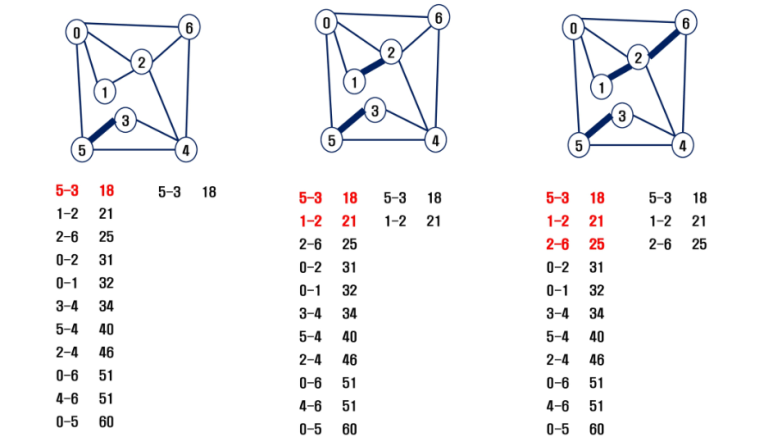 - 사이클이 존재하면 다음으로 가중치가 낮은 간선 선택
