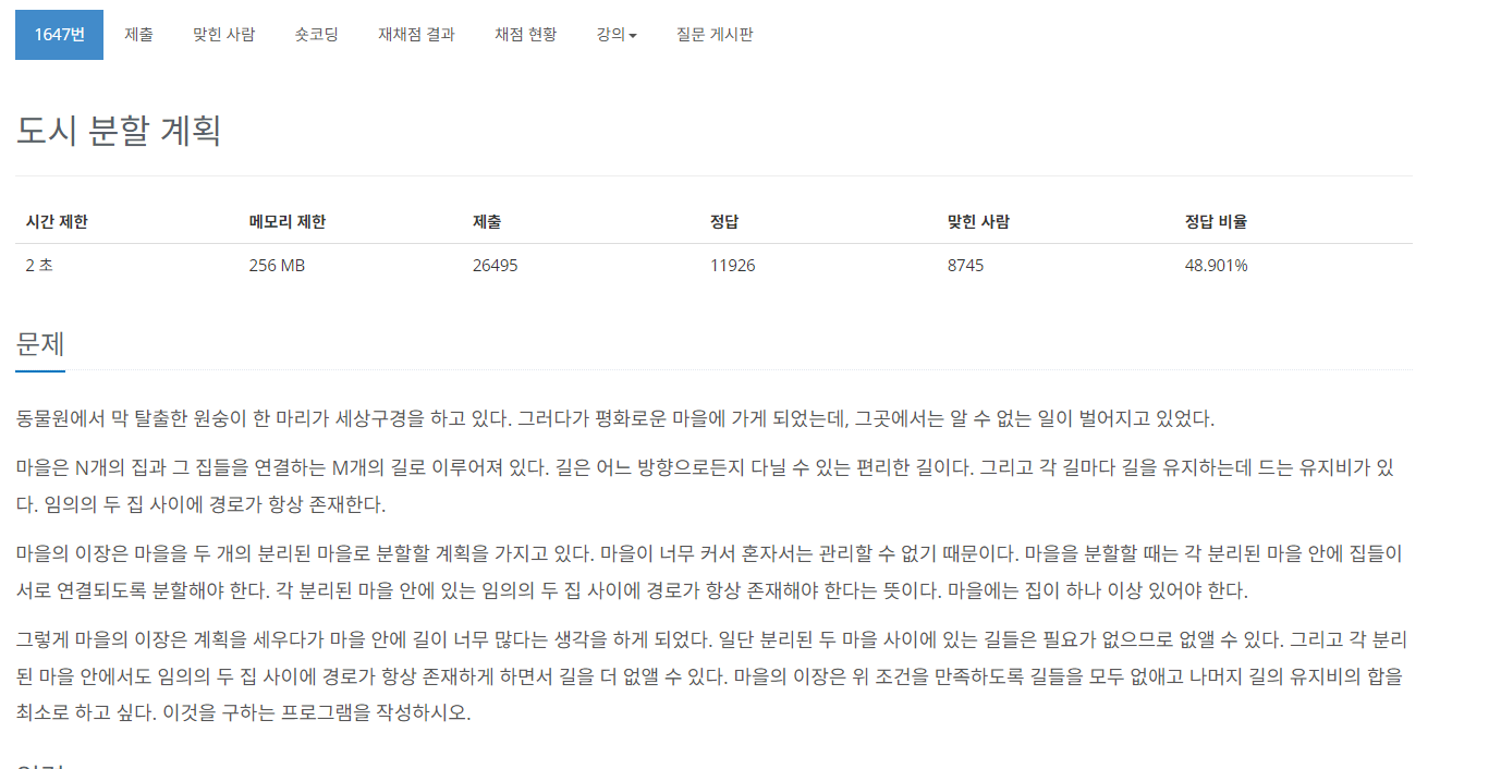 1647번: 도시 분할 계획