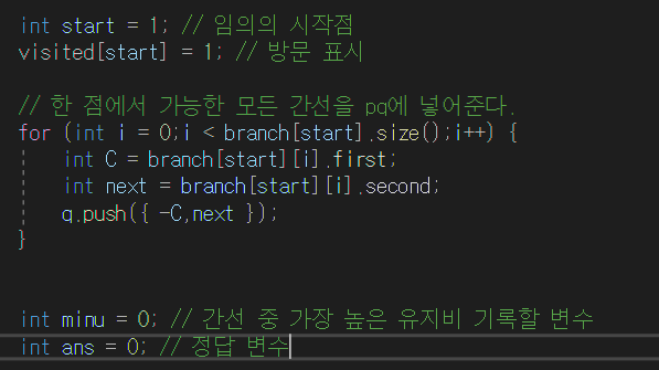 2. priority_queue를 이용한 다익스트라와 같은 방식을 사용해서 가장 유지비가 적은 노드에 접근하고
