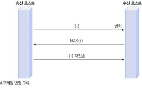 NAK : 수신된 데이터가 변형되어 있으면 (Check Sum같은 방식으로 확인) 송신 호스트에게 부정 응답을 보낸다.